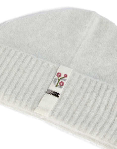The Bluey beanie, crafted in stretch alpaca wool, is perfect for facing the winter season with style and comfort. Its soft texture is enhanced by a ribbed turn-up and a floral-embroidered ribbon at the back — adding a delicate, feminine touch.